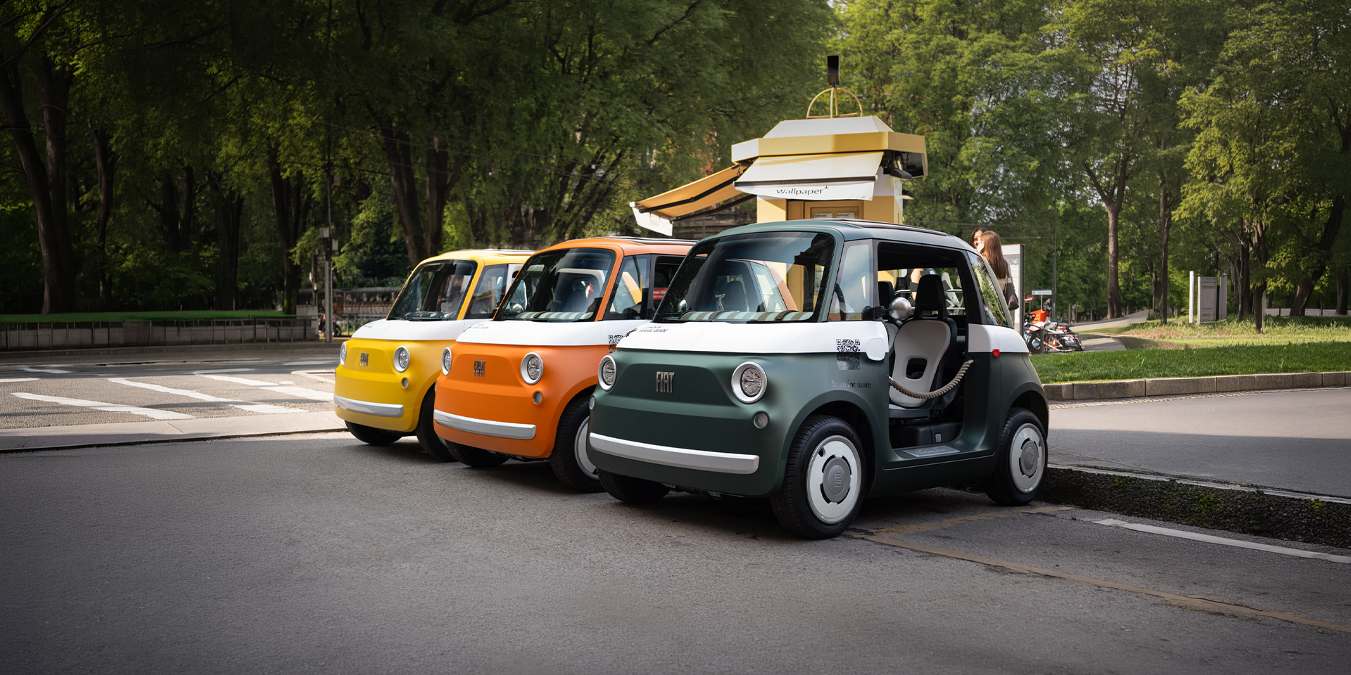 Starting on Monday, April 20 at 8:00 am, the four Fiat Topolino will depart from the Wallpaper* kiosk and remain active throughout the entire Design Week across Milan.